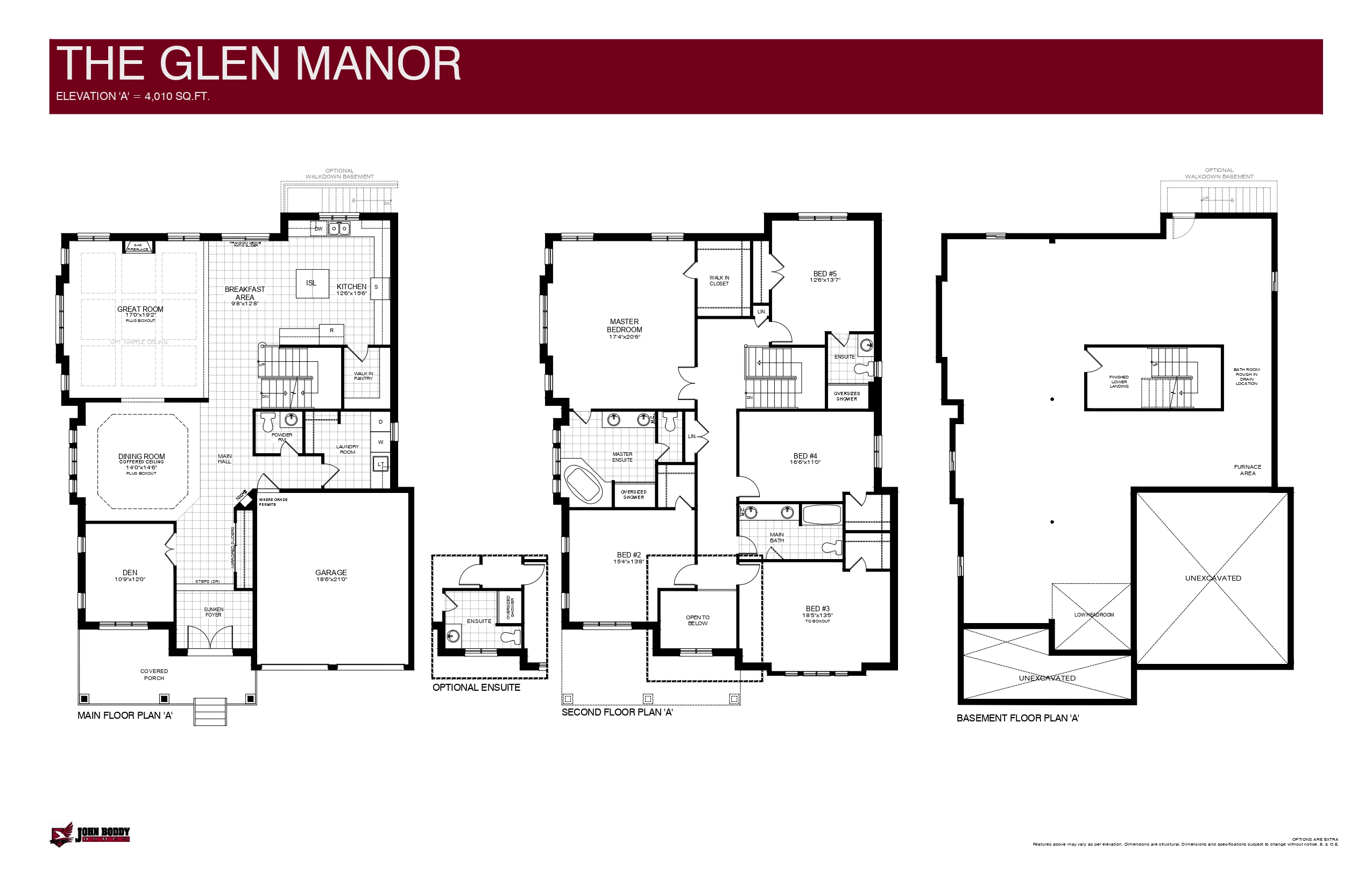 • Master Ensuite features ceramic tile flooring, double basin vanity with mirror treatment above, medicine cabinet, acrylic soaking tub, oversized shower with sliding glass doors and private water closet,
