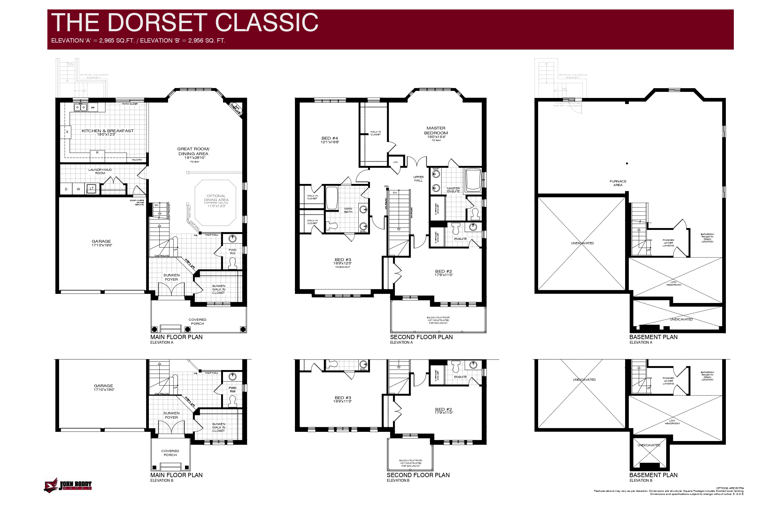 • Main Bathroom offers ceramic tile flooring, double basin vanity with mirror treatment above and medicine cabinet, acrylic tub, private water closet and optional access to bedroom 3 and 4,