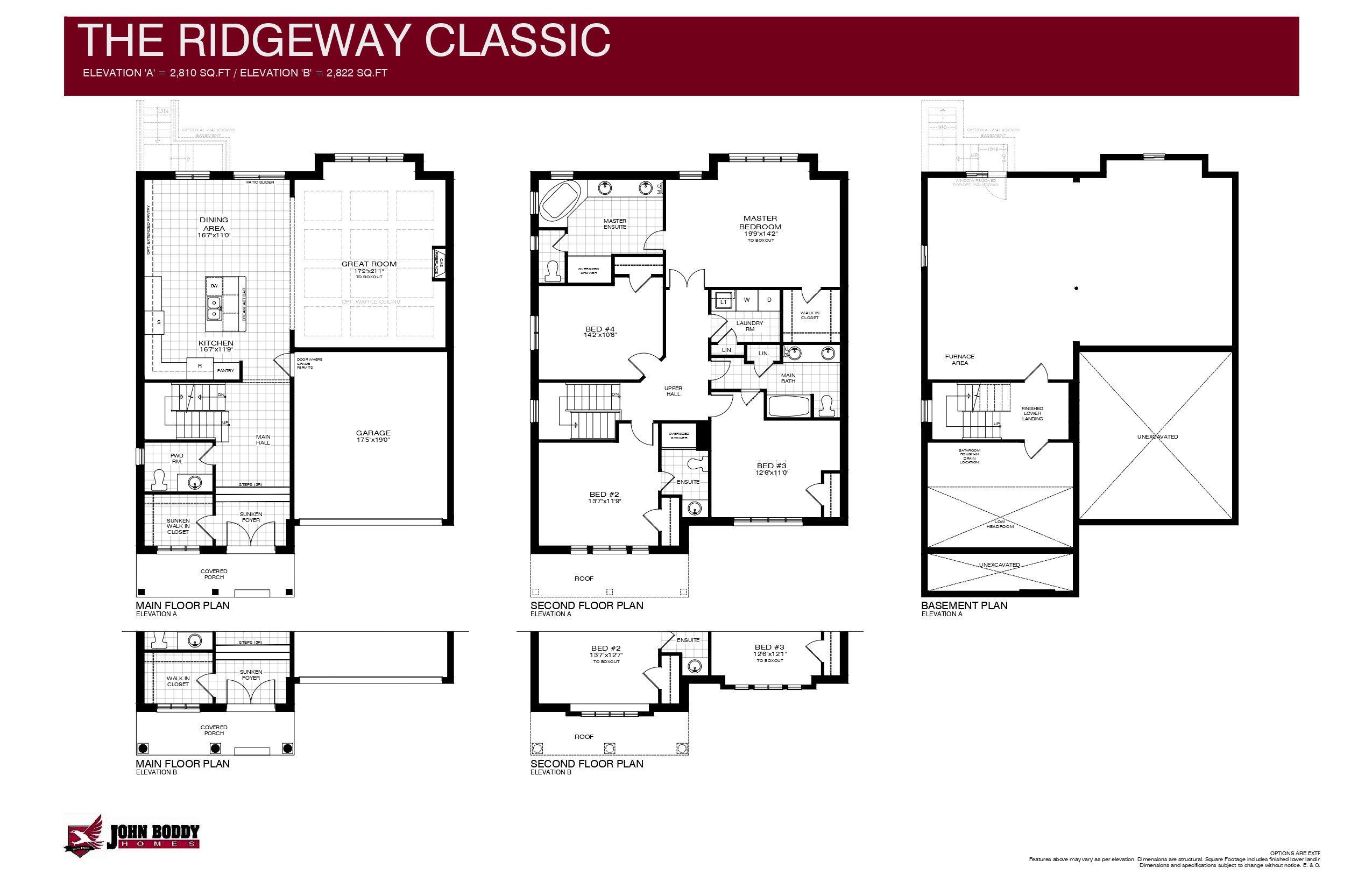 • Master Ensuite features ceramic tile flooring, double basin vanity with mirror treatment above, medicine cabinet, acrylic soaking tub, oversized shower with sliding glass doors and private water closet with operable venting window,